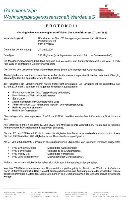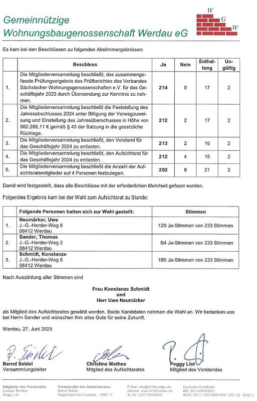 Heute erhalten Sie das Ergebnis der Mitgliederversammlung 2025.